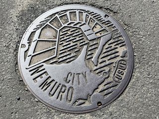 北海道★根室市 エトピリカとユルリ島をデザイン。 納沙布岬にある領土返還祈念シンボル像と、島を含む道東の地図の○が根室の位置になっている。 TOP BACK